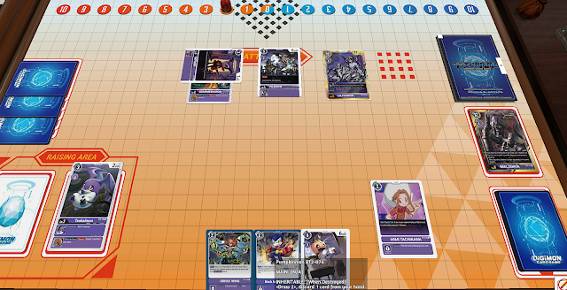 How this is done is that you are playing Digimon cards from your hand, using a shared resource pool with your opponent. When you pay the cost of a card, you move that resource pool down, and if it reaches below zero, it becomes the opponent's turn. It's like a tug of war where if you use more expensive costed cards, the more resources your opponent will have to resist you.