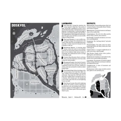 A setting guide to the haunted city of Doskvol, with all the maps, factions, NPCs, schemes, and opportunities you need to run an exciting sandbox game.