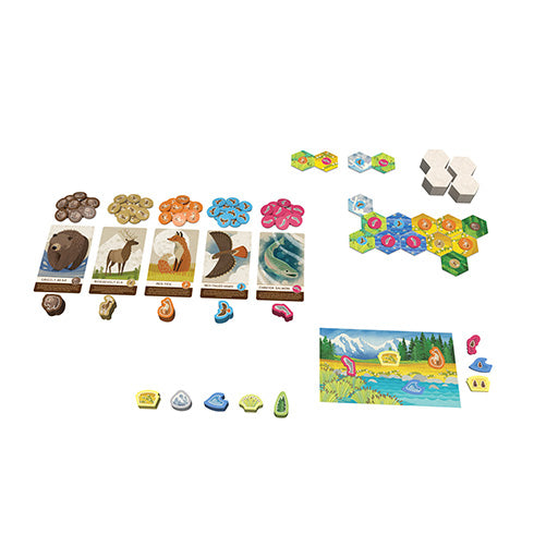 Cascadia Junior is a stepping stone game that will allow children to learn the basics of pattern matching. Over time, they can use the included wildlife scoring cards with the advanced mode, which requires more complex shapes for each wildlife group. Once children gain familiarity with that mode, they can try out the family mode of the base Cascadia game and eventually the full Cascadia experience!