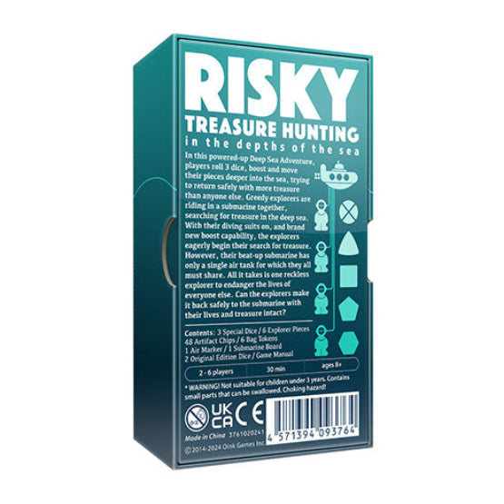 In this powered-up Deep Sea Adventure, players roll 3 dice, boost and move their pieces deeper into the sea, trying to return safely with more treasure than anyone else. Greedy explorers are riding in a submarine together, searching for treasure in the deep sea. With their diving suits on, and brand new boost capability, the explorers eagerly begin their search for treasure.