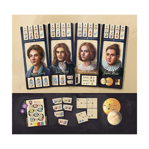 This expansion for Galileo Galilei introduces the Moon as a new object of observation, adding a new scoring mechanic to explore. Discover four new playable characters, each bringing unique abilities. Additionally, powerful inquisitors enter the game, offering great rewards to those who can successfully persuade them. Map the Moon together and enhance your strategic possibilities!