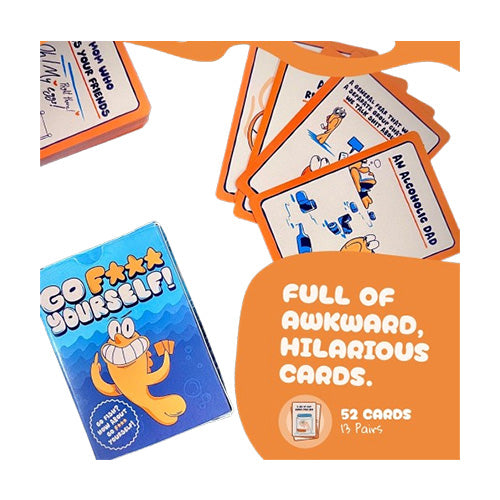 Take classic Go Fish and crank it up, with our go fish card game for Grown up, outrageous offensive prompts and the iconic “Go f yourself!” shout, this 17+ card game delivers raw laughs and party energy for daring players.