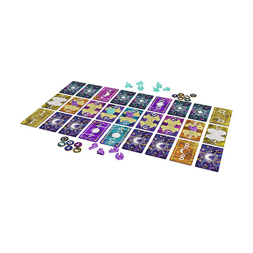 Each player has dragons and mice working together to organize the cosmos: they send their dragons out to gather information and the mice stay back to take notes and make conclusions based on the knowledge brought back by their dragons.
