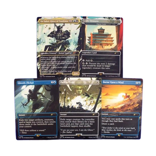 Leading the drop is Jin Sakai, Ghost of Tsushima, who receives a newly designed Magic: The Gathering card. The rest of the drop tells his story—fragments of his legend, a sign the Ghost is somewhere on your table.