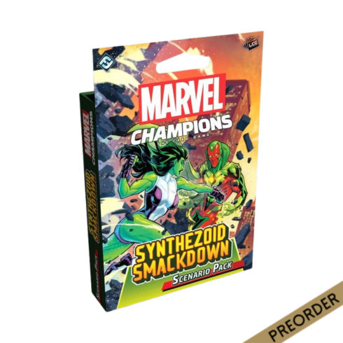 IntroducingΒ Synthezoid Smackdown, the latest scenario pack forΒ Marvel Champions: The Card Game! This pack includes two brand-new, customizable scenarios featuring She-Hulk and Vision, two heroic leaders clashing over their conflicting ideals. This extra-large, 90-card scenario pack comes with eight modular encounter sets (four for registration, four for resistance) that can be mixed and matched with those from theΒ Civil WarΒ expansion for further customizing options. Also included are rules and cards for an optional competitive mode in which players team up with their own leader and race to be the first to defeat the opposing teamβs leader.