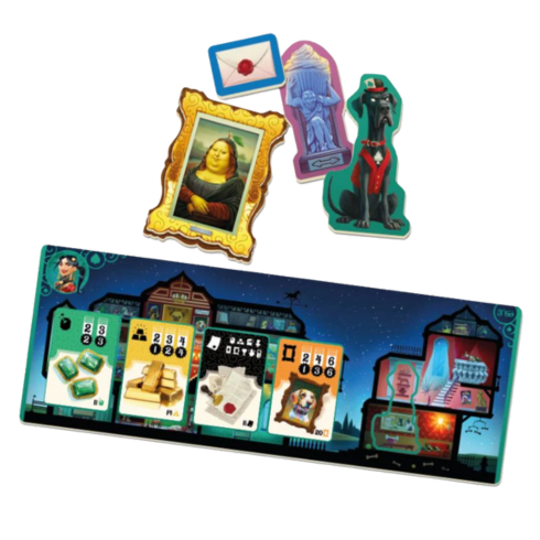 In Pinched! players take turns being the Mastermind, picking one of the manors to rob and attempting to make away with all the loot. In the meantime, the other burglars will try to guess which manor will be robbed and sneak in to pinch some of the valuables. Watch your steps though, manors have their secrets.