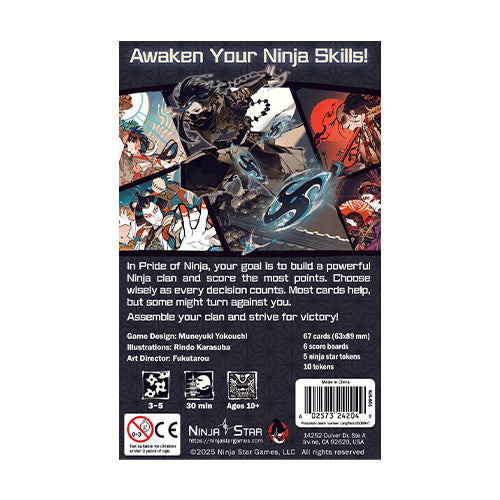 In Pride of Ninja, your goal is to score the most points by assembling a formidable team of ninja. Each round, you'll draft characters and strategically place them either in the light at the front or hidden in the shadows at the back.