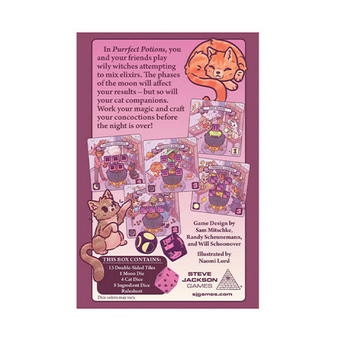 Purrfect Potions is a strategic card game where players compete to brew magical concoctions. In this enchanting game, feline assistants help with the brewing, but they are unpredictable and follow the whims of the moon rather than player commands. Combining whimsical witch-themed gameplay with tactical decision-making, Purrfect Potions offers an experience that is quick to learn but provides depth for repeated play.