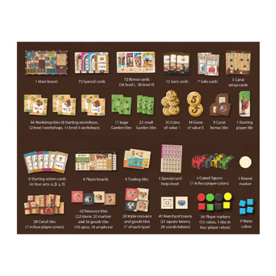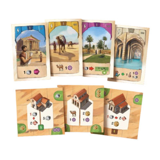 In the game, players represent merchants who travel on business trips and buy and sell goods in the various cities in the region. Resafa had no local sources of water, so it depended heavily on large cisterns to collect the spring and winter rainwater to make the area habitable. Players build water tanks and canals to distribute that water where it is needed. In the cities, they build workshops to help their businesses grow, which will allow them to collect resources and camels. They also construct gardens between the businesses, generating more resources and also victory points.