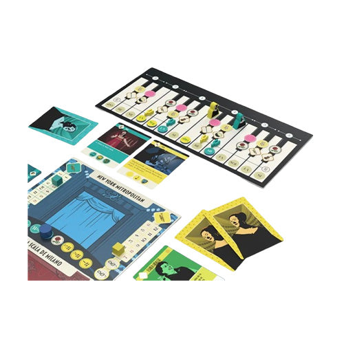 The game ends when five operas have been performed. At that point, players add up the points earned from theaters, the orchestra, the piano, and the timeline to determine who has left the most indelible mark on opera history. Will Callas' overwhelming charisma or Tebaldi's vocal perfection claim the ultimate glory? Only the stage will decide.