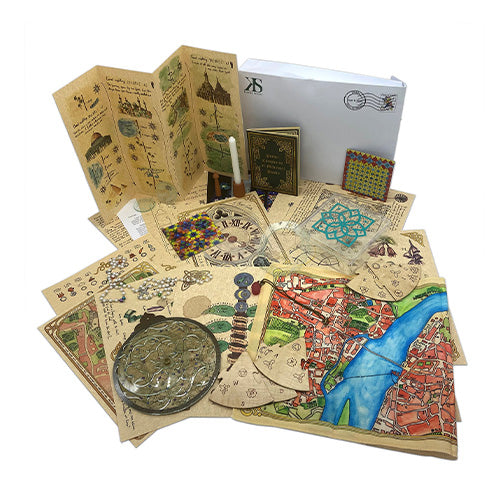 The Emerald Flame is a narrative tabletop puzzle game told in three parts. Commissioned by an organization shrouded in mystery, players take the role of a historical expert embarking on a quest to piece together the recipe for a fabled elixir by investigating maps, drawings, alchemical diagrams, and mysterious artifacts.