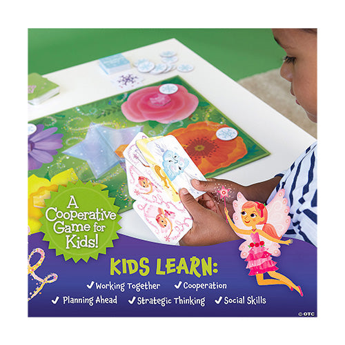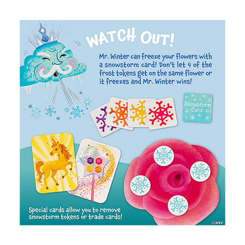 Mr. Winter is trying to freeze over the fairies’ treasured flowers! Players match Fairy Cards to gather the hidden Magic Gems before 4 snowflakes land on one flower. Special cards allow players to slow down Mr. Winter’s chill. Work together to fill the fairies’ magic wand and banish Mr. Winter from the garden!Kids work together to banish Mr. Winter from their beloved garden! Different card combinations keep the game fun and interesting.
