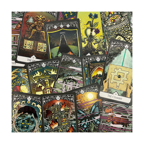 The tarot deck contains 78 cards--56 Minor Arcana and 22 Major Arcana, the latter of which each represent a puzzle. Puzzles are solved using sets of Minor Arcana cards and clues from the story booklet and result in solution keywords that lead players to discover new pieces of the narrative. Some story passages grant items which can be later used to unlock extra scenes, and some puzzles have multiple answers, allowing players to unlock more of the story if they find all the solutions.