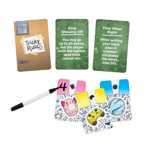 This is a must-follow trick-taking game with a twist: you write the values on your own cards each round, making every hand a new puzzle. Win tricks to claim point tokens, but choose carefully, because not all tokens are created equal. Add optional βTricky Ruleβ cards to mix things up, and youβve got a fast, funny, and replayable game of strategy and surprises.