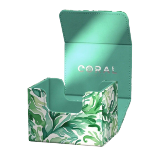 The sustainable Coral Places deck boxes are made from 52% recycled materials and, in addition to the durable Xenoskin surface, have a strong magnetic closure and a high-quality microfibre inner lining so that up to 100 (double-sleeved) or 120 (single-sleeved) cards from games such as Magic: The Gathering, PokΓ©mon, Lorcana, One Piece or Yu-Gi-Oh! can be stored safely. The plastic-free packaging is also made entirely from recycled paper and cellulose-based film.