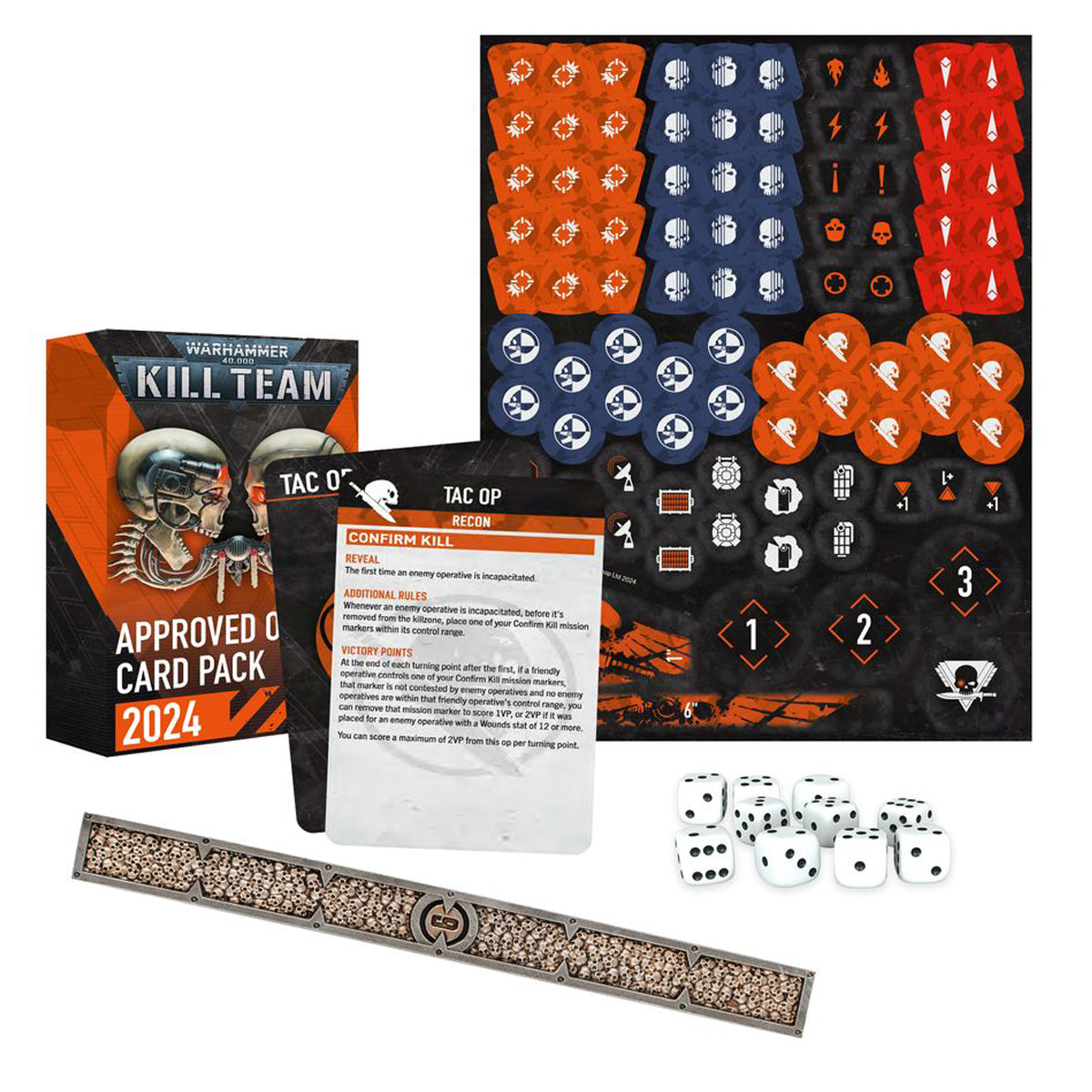 As well as two complete kill teams of brand-new plastic miniatures, this massive boxed set contains everything you need to enter the Killzone – from the full Kill Team: Core Book, tokens, and dice to a game board, war-torn urban terrain, and universal equipment. This box also contains the Approved Operations card pack, keeping your games balanced and competitive with additional victory conditions and mission maps for your Killzone.