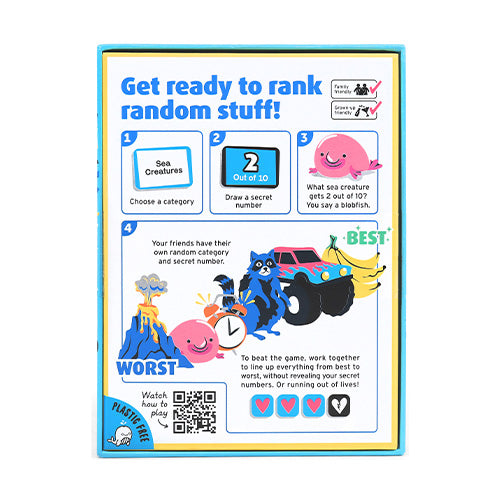 Then as a group you have to put all these random things in order from worst thing to best thing, without revealing your number.