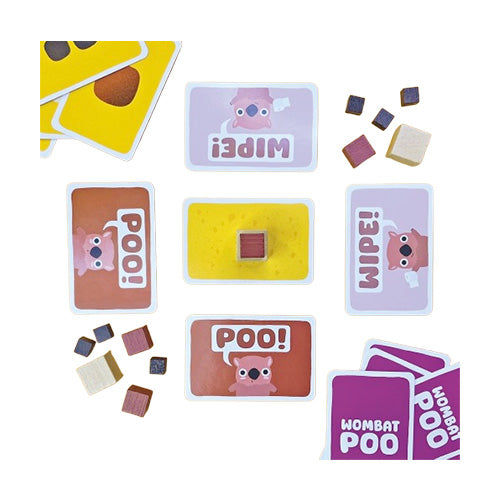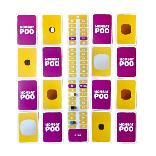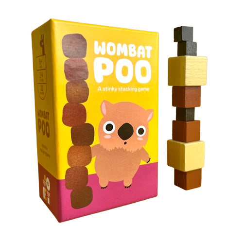 Did you know wombat poo is shaped like cubes? It’s true! In this game you take turns stacking poo cubes of different sizes onto a teetering tower. Choose the right time to score one point per cube in the tower and exit the round. But don’t wait too long, or the tower will fall over and you’ll score nothing!